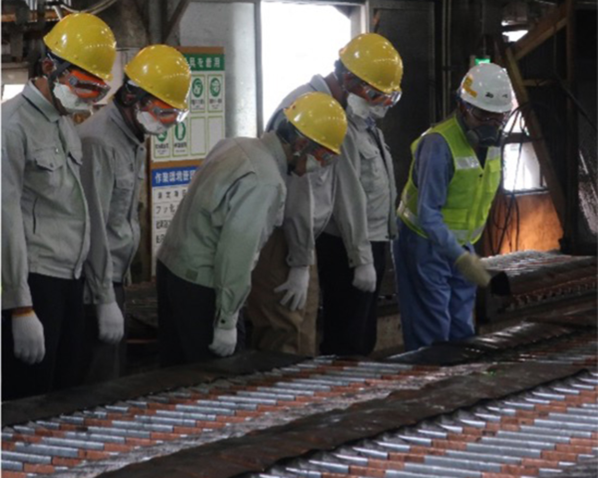 見学内容としては、会社概況説明、その中で廃バッテリーを原料に製品としてできるまでの流れも説明しました。その後、実際に各工場を見学してもらい、最後に質疑応答が行われました。先生方は日頃から鉛蓄電池のしくみや非鉄金属精錬、リサイクルについて生徒さんたちに教えており活発な意見交換が行われ、「貴重な体験で今後の授業に役立ちます」「今後、生徒によりよい授業ができます」など感想も頂きました。